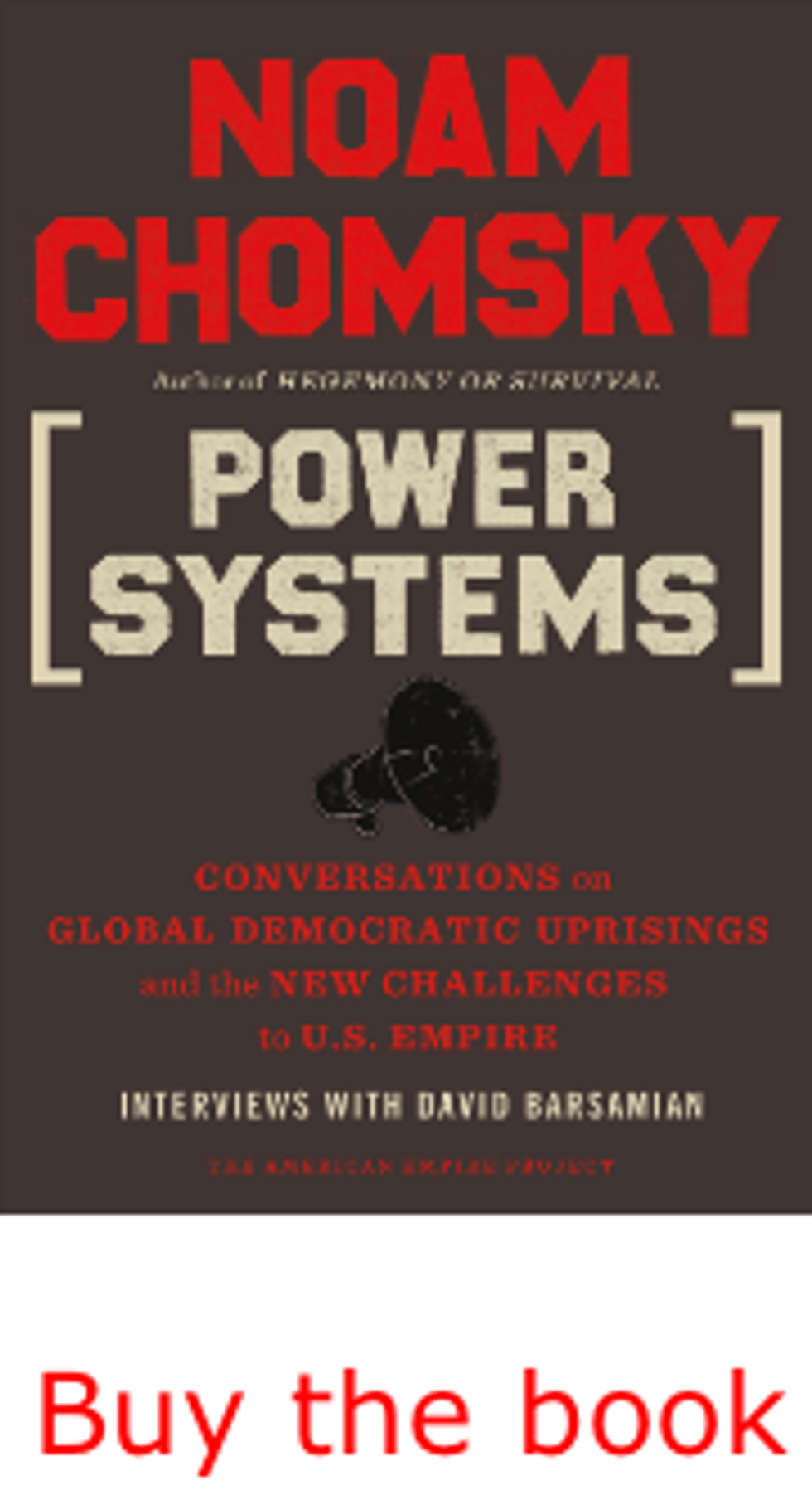 Noam Chomsky is Institute Professor Emeritus in the MIT Department of Linguistics and Philosophy. A TomDispatch regular, he is the author of numerous best-selling political works, including Hopes and Prospects, Making the Future, and most recently (with interviewer David Barsamian), Power Systems: Conversations on Global Democratic Uprisings and the New Challenges to U.S. Empire (The American Empire Project, Metropolitan Books).