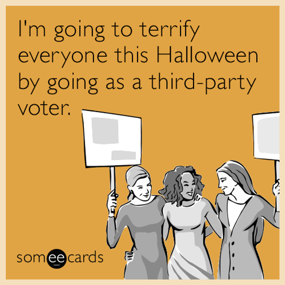 From the past debates to all those moments that somehow made you both laugh and cry, there’s no shortage of material to draw inspiration from. We’ve cringed at the idea of a Donald Trump presidency, collectively face-palmed at Libertarian presidential candidate Gary Johnson’s notorious Aleppo gaffe, retweeted dozens of memes of Ted Cruz phone-banking for his former nemesis, prayed to the universe to allow us to become Elizabeth Warren, and sat on the edges of our seats watching Hillary Clinton brave being stalked around the second presidential debate stage. And now, we can take our pick of relevant costumes every politico for miles will be able to recognize.