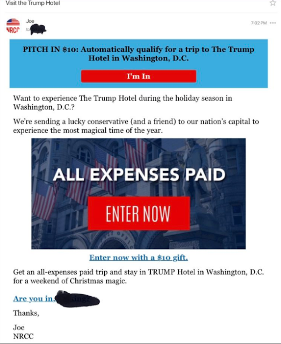It's not just the first family either. The NRCC is just coming right out and putting money directly into Donald Trump's pocket now: