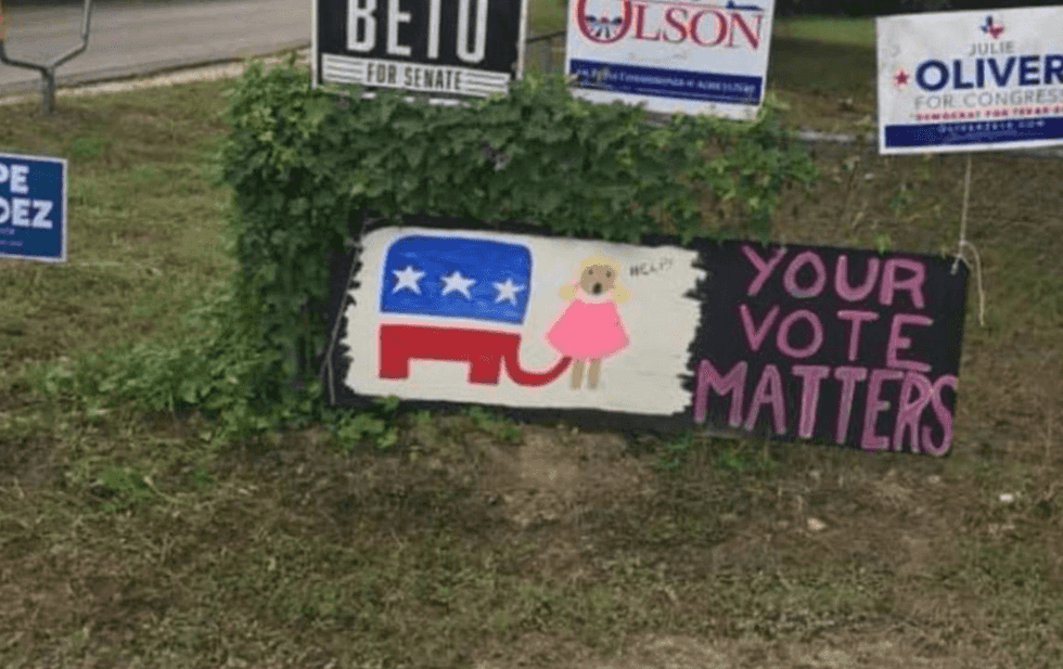 Police In Texas Seized a Handmade Yard Sign Depicting a GOP Elephant with Its Trunk Up a Girl’s Skirt