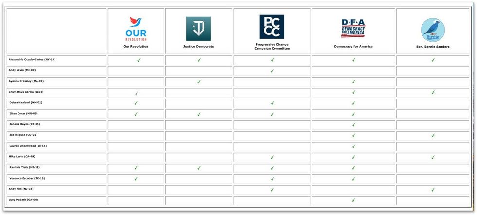 Below is the full list of the newly elected Democratic representatives who were endorsed by Sanders and prominent progressive organizations like Justice Democrats and Our Revolution. (Click the image or here to enlarge.)