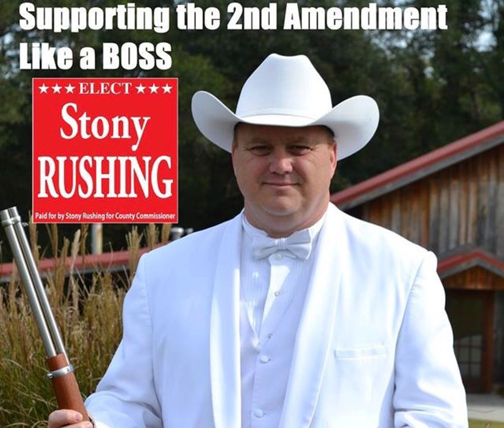A Union County commissioner who first served from 2002-2006 and was re-elected in 2014, Rushing owns firearms dealerships in two states and the Take Aim Training Range, a gun range affiliated with the National Rifle Association. He also teaches hunting and concealed carry classes.