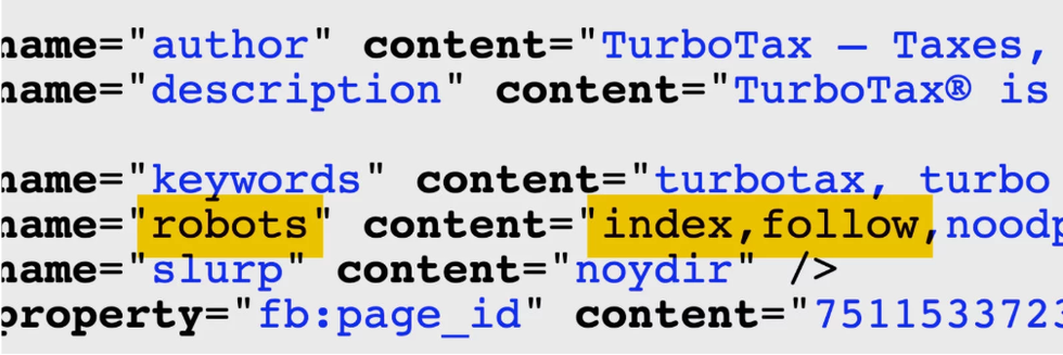 In contrast, the TurboTax page that puts many users on track to pay signals to Google that it should be listed in search results.