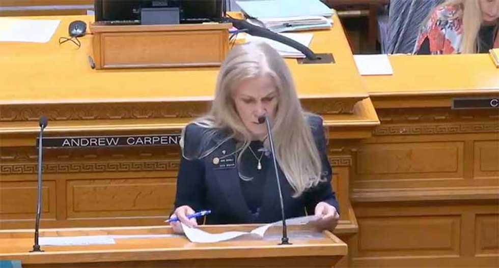Marble wasn’t the only GOP legislator to vote against it. She was, however, the only one that tried to actually defend the pay disparity---and threw in her standard racist overtones to boot, saying, ”...and I just can’t take part in something that is so focused against the white man. Because frankly, I feel white men have done a lot for this country...”