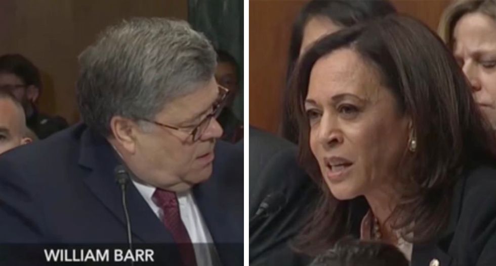 Sen. Kamala Harris (D-CA), a former prosecutor and current 2020 Democratic presidential candidate, on Wednesday delivered a brutal line of questioning that touched onAttorney General Bill Barr's creditability, conflict of interest and role in misrepresenting special counsel Robert Mueller’s report to the public.