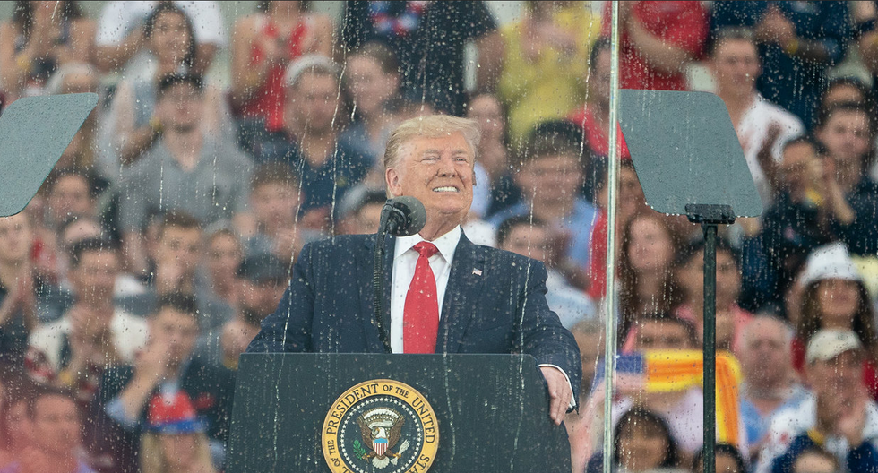 Trump's attempt to wedge himself and his reelection into the festivities—using, in part, taxpayer millions diverted from much needed repairs of the national parks—had the grace of that clown who tries to photobomb a group portrait in the high school yearbook, making faces and wiggling fingers in his ears. The speech, which many feared would be a partisan attack similar to the rants he delivers at his campaign rallies, turned out to be standard if dull rhetoric that sounded more like the third-place winning essay in an eighth grade civics contest than a speech by our putative chief executive. It went on at such monotonous length that CNN actually cut away for a commercial break, something I have never in my life seen happen during a presidential address.