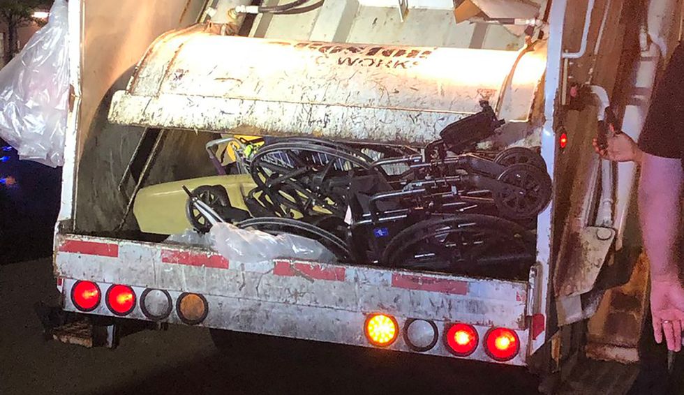 A viral image of the wheelchairs being destroyed made its way across social media Wednesday, generating outrage.