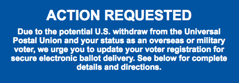"Military and overseas citizens already face enormous hurdles casting their votes," Matthew Weil, director of the Bipartisan Policy Center's Elections Project, told The Washington Post. "These citizens may be forced to pay up to $70 to return their ballots via private shipping companies, and it's not clear all states will accept ballots delivered this way."