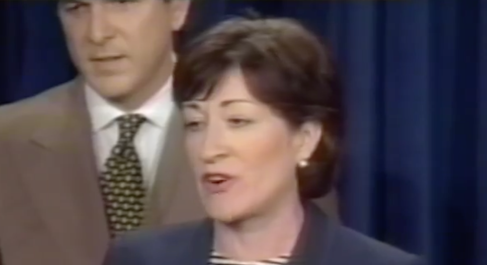 The C-SPAN clip from January 27, 1999, shows Collins, a senator even back then, discussing the then-ongoing impeachment of President Bill Clinton.