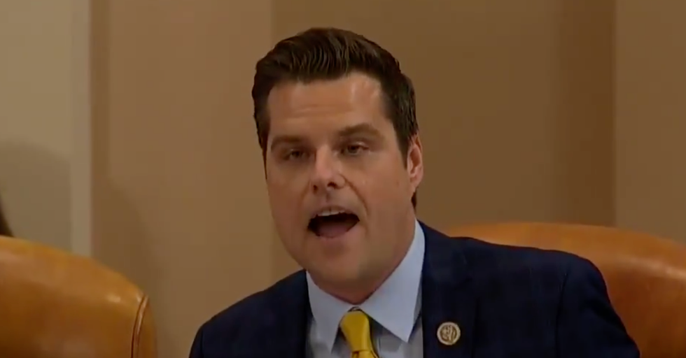 Gaetz was apparently infuriated with Democratic witness and counsel Daniel Goldman, who was presenting the findings of the Intelligence Committee's investigation of the Ukraine scandal. Goldman had raised the fact that Gordon Sondland, President Donald Trump's ambassador to the European Union and a key witness in the probe, had donated $1 million to the 2017 inauguration before receiving his appointment. Rep. Doug Collins (R-GA), the ranking member, castigated Goldman for bringing this fact up.
