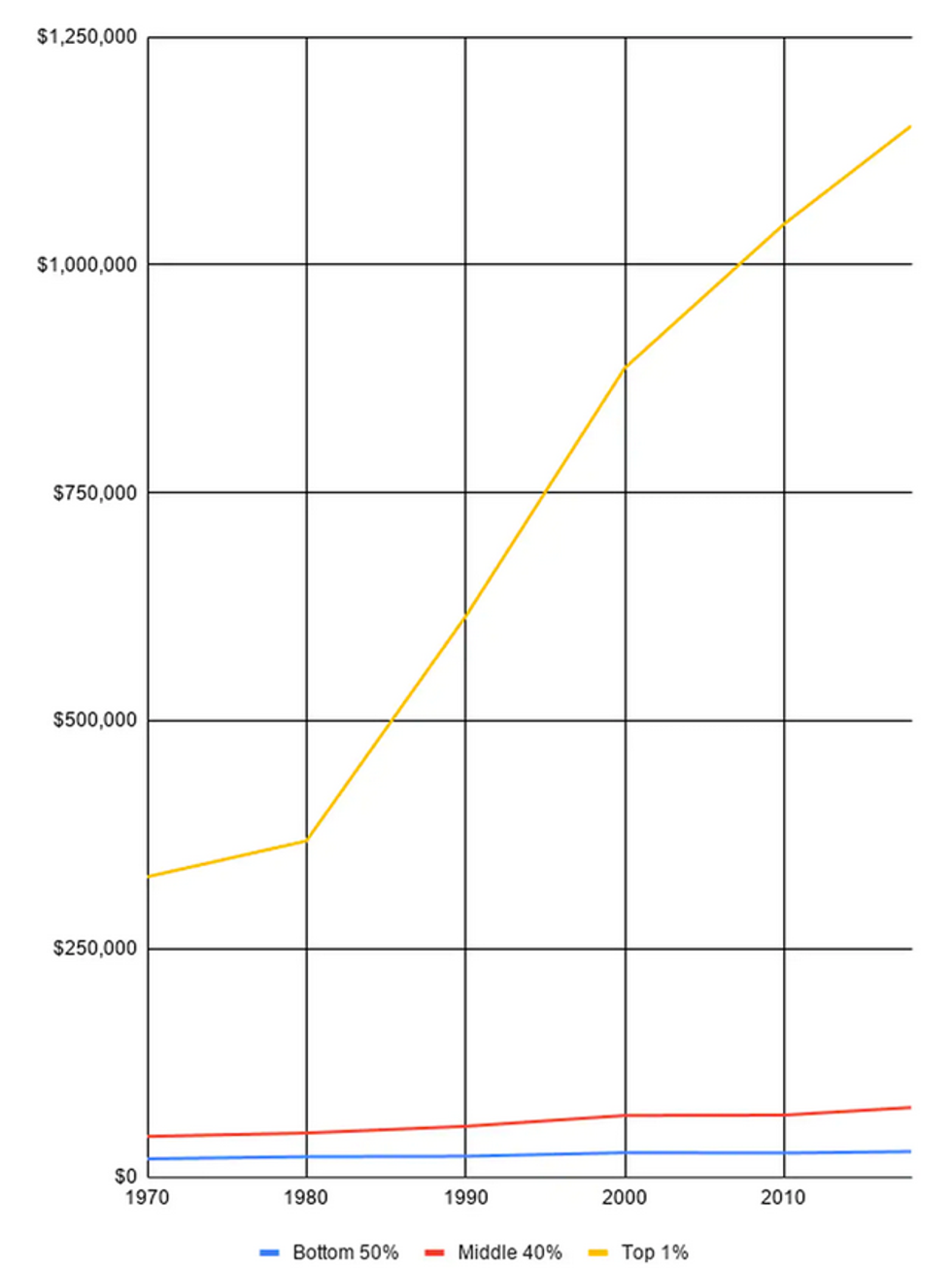 'Staggering' new data shows income of top 1 percent has grown 100 times faster than bottom 50 percent since 1970