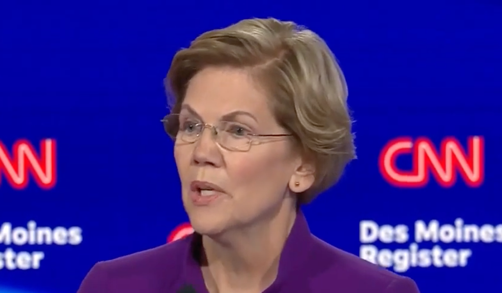 Sen. Elizabeth Warren and Sen. Bernie Sanders were asked to weigh in, of course, on the ready-made spat of the day: whether Sanders once argued with Warren over whether a woman could win the presidency. Sanders denied saying it or thinking it. Warren said “I disagreed. Bernie is my friend, and I am not here to try to fight with Bernie.” Instead, she reframed the question in broader terms.
