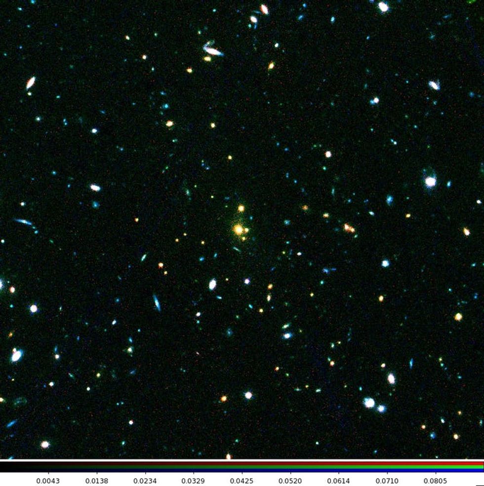 From this realization, we proceeded to obtain an image of our candidate cluster using the European Southern Observatory’s Very Large Telescope. This image, taken with an infrared camera, revealed the telltale presence of faint red objects — distant galaxies; but exactly how distant remained a mystery.