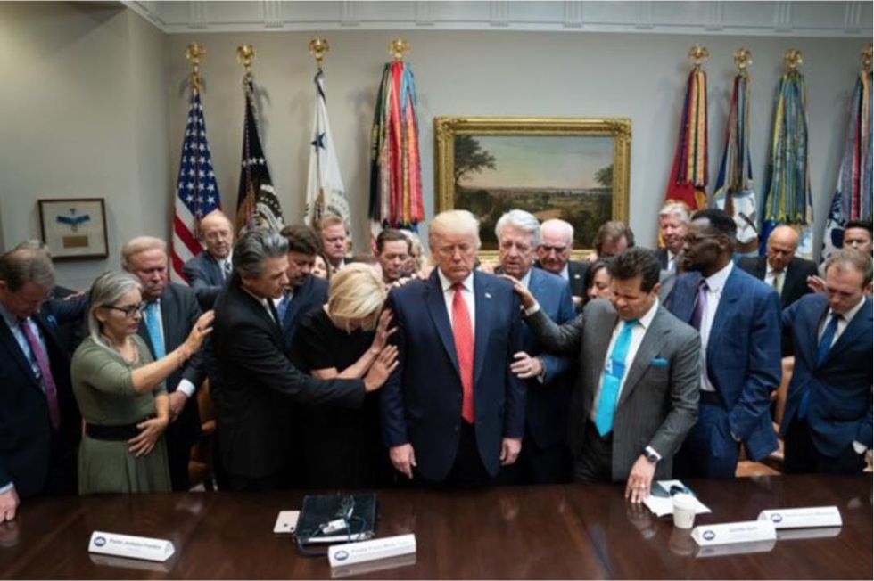 Paula White: We declare every demonic network to be scattered right now. We declare right now that there is a hedge of protection over our president. We deal with every demonic attack against him, against his mantle, against his purpose, against his position as he stands in position as president.