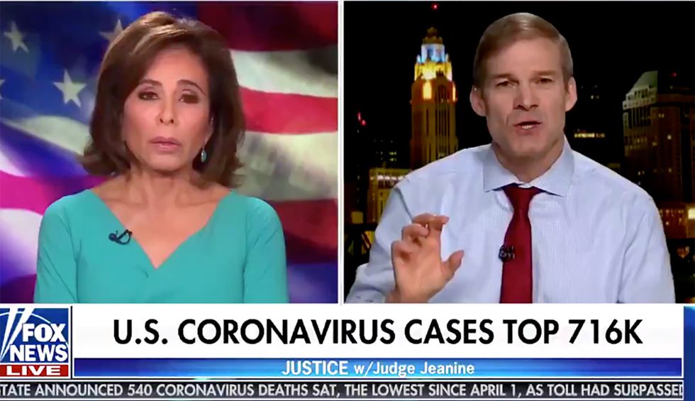Jim Jordan tells Fox News' Jeanine Pirro he wants Congress to investigate governors for coronavirus shutdown orders