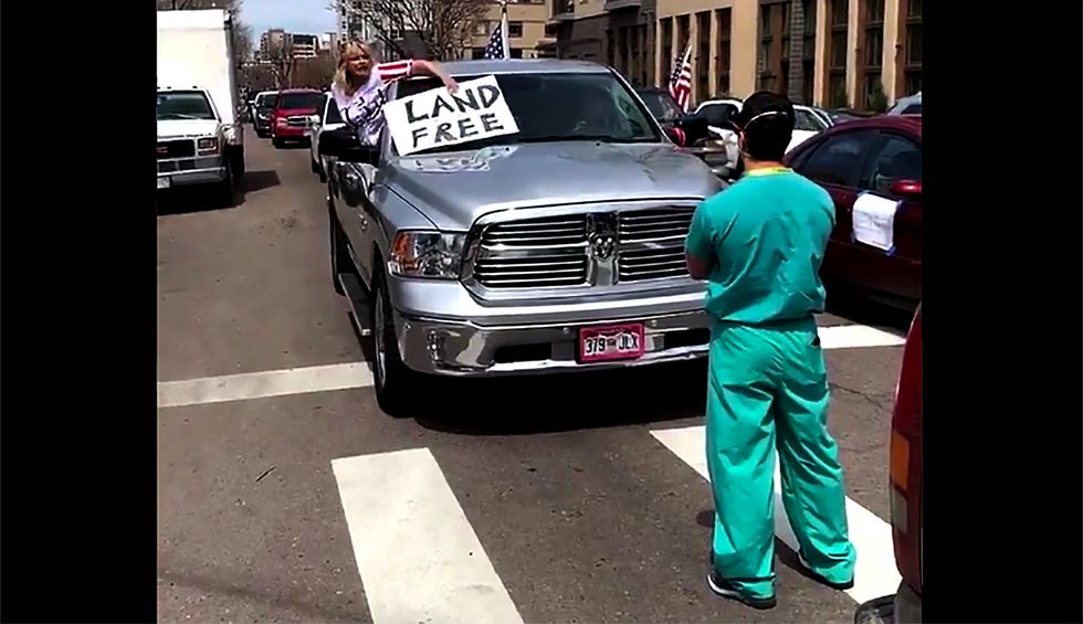 Two nurses, who have witnessed first hand the toll Covid is taking in Colorado, stood up and peacefully counter pr… https://t.co/HAjxzahgH3— MarcZenn (@MarcZenn) 1587329114