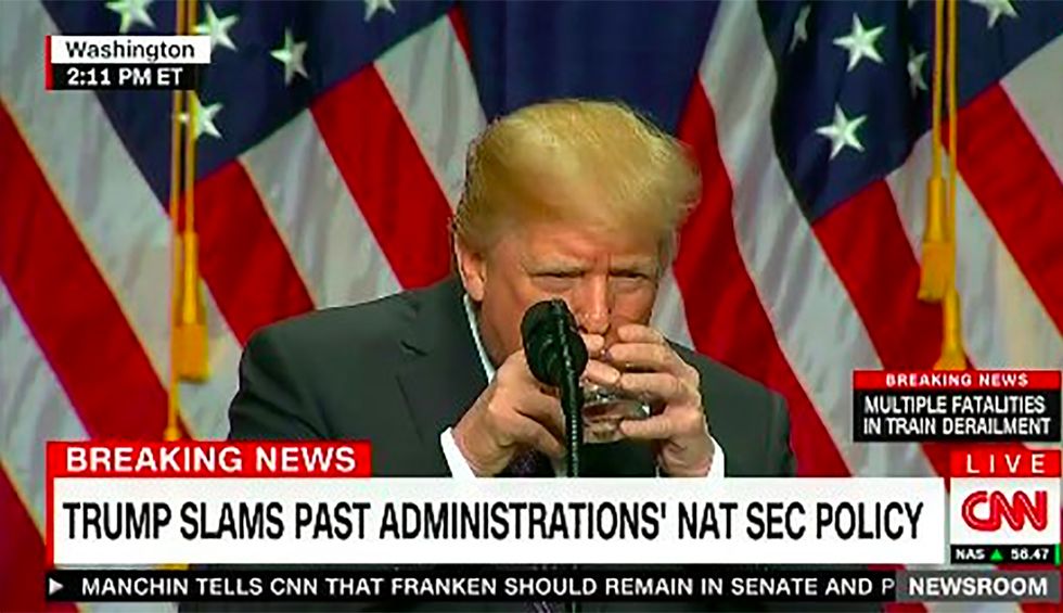Should we be concerned that Trump needs 2 hands to drink a glass of water?