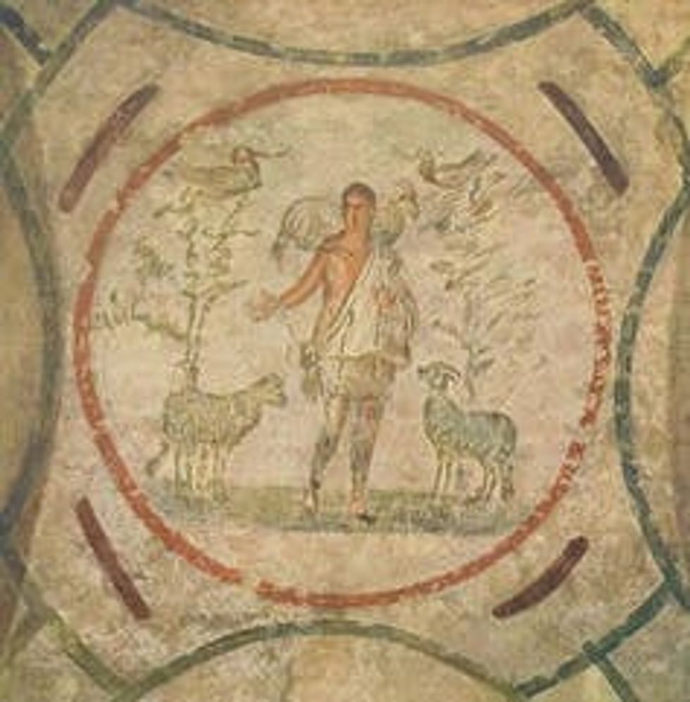 Probably the most popular syncretic image is Christ as the Good Shepherd, a beardless, youthful figure based on pagan representations of Orpheus, Hermes and Apollo.