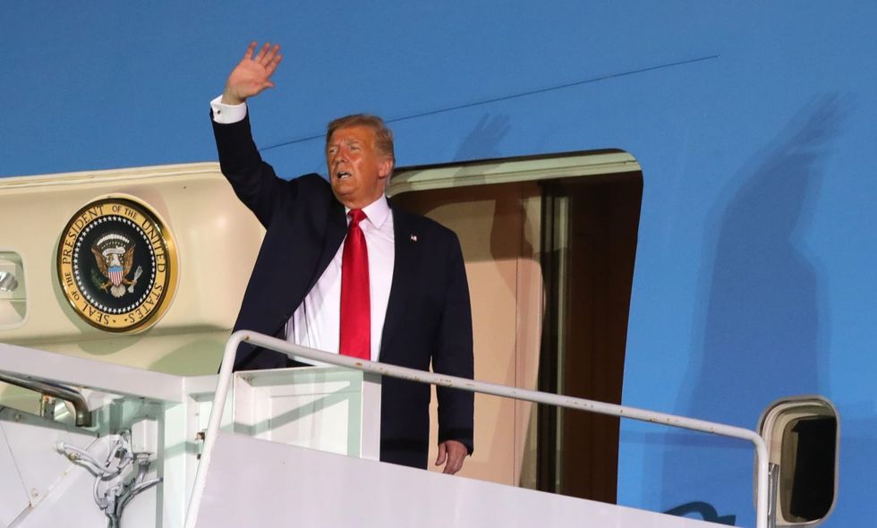 President Donald Trump waves goodbye to cheering supporters as he departs his campaign rally at Orlando Sanford International Airport in on Monday, Oct. 12, 2020 in Sanford, Florida. - Joe Burbank/Orlando Sentinel/TNS