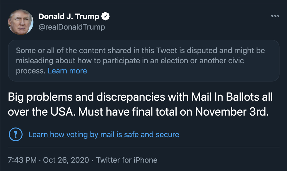 Had this been a throwaway sentence, it might have been ignored. But instead, Kavanaugh went on at length casting doubt on election results that take awhile to fully count, even though this is commonplace in the United States. And it seemed in line with many comments Trump has made trying to cast doubt on the election, including a tweet he sent Monday night (partially censored by Twitter because it violates rules around election misinformation):