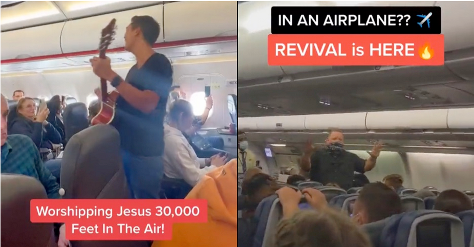 Watch: Evangelical Christians try to spread the gospel with on-board airplane cabin-wide singing