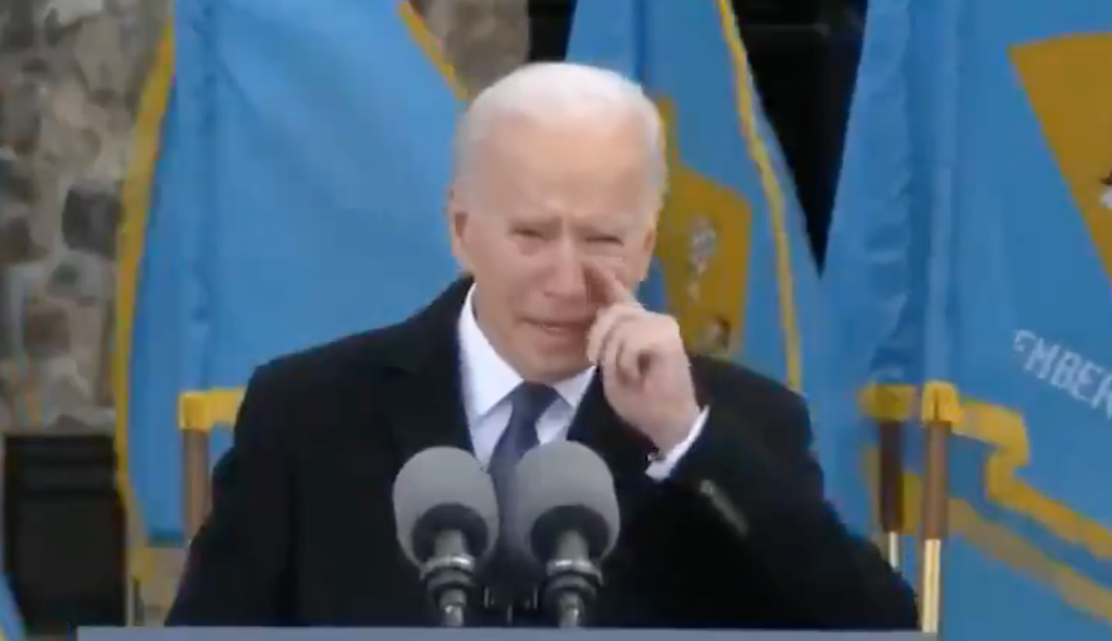 Overcome with emotion, Biden continued, "Well, excuse the emotion. But when I die, Delaware will be written on my heart and the hearts of all of us — all the Bidens." At one point, he wiped way a tear from his eye.
