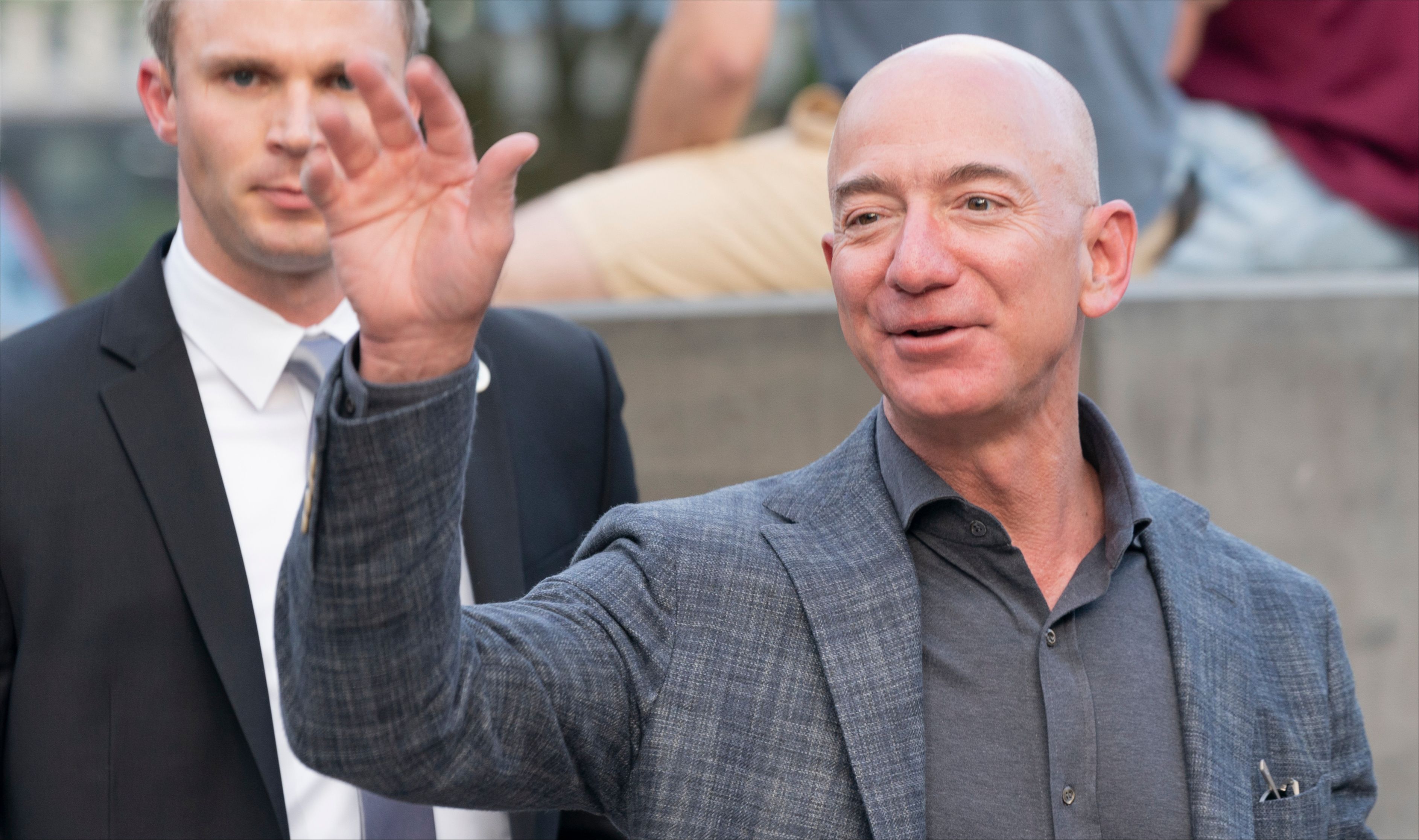 New York, NY - May 15, 2019: Jeff Bezos arrives at the Statue Of Liberty Museum Opening Celebration at Battery Park