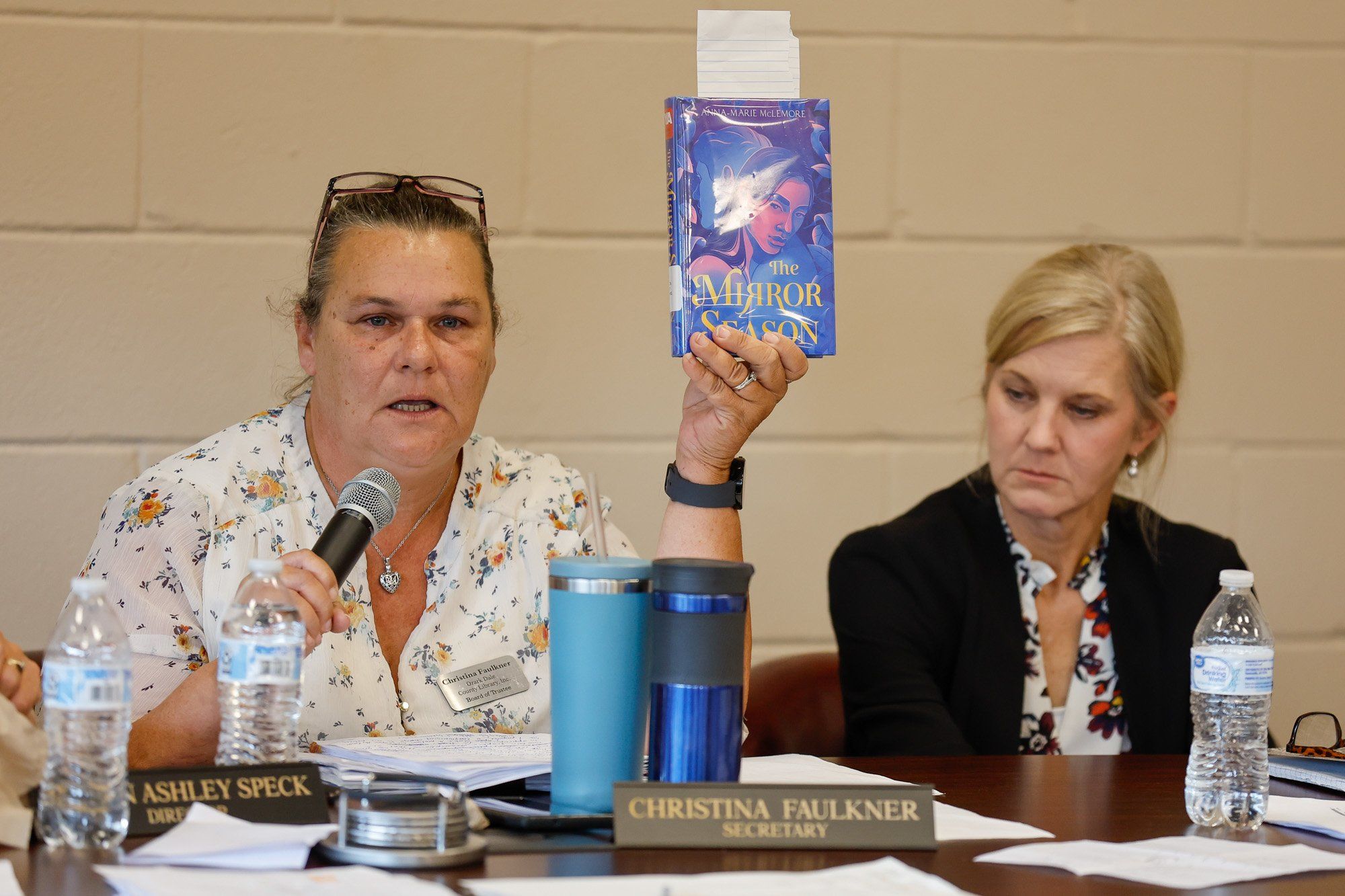 Some members of the board called for the removal. Trustee Monica Carroll, who read a sexually explicit passage from The Mirror Season after recommending attendees remove children from the room, said the community should follow procedures to help identify those books from the library.