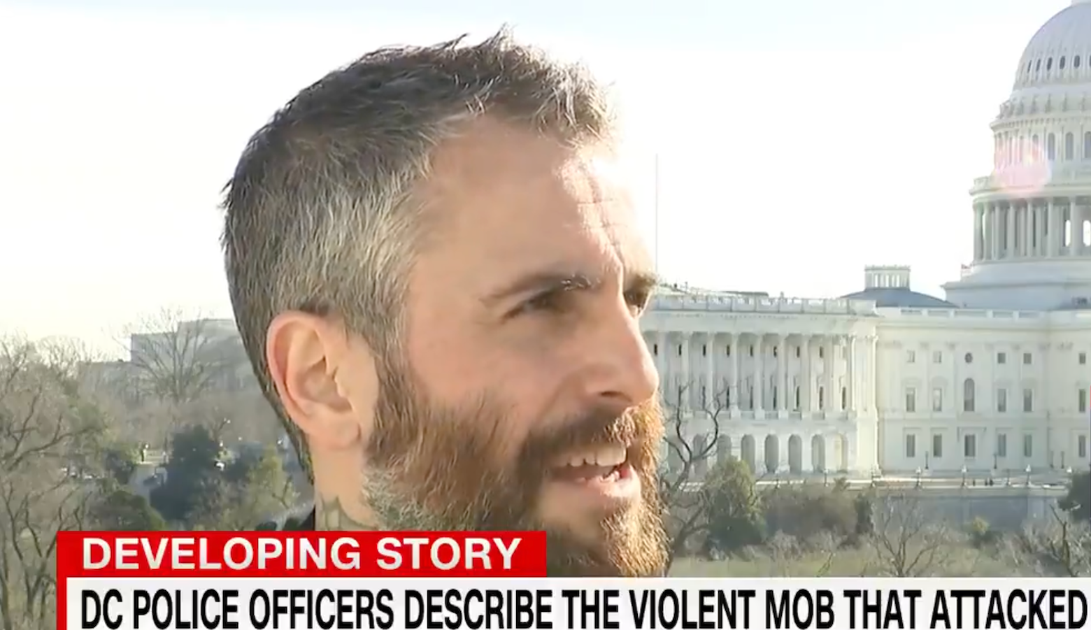CNN also interviewed Daniel Hodges, the DC police officer who, in a video, can be seen screaming in agony when he was trapped by a door and being crushed by the mob. Hodges told CNN, "There was a guy ripping my mask off, and he was able to rip away my baton and beat me with it. He was practically foaming at the mouth. These people were true believers in the worst way…. Obviously, I was calling out for all I was worth, and an officer behind me was able to get me enough room to pull me out of there."