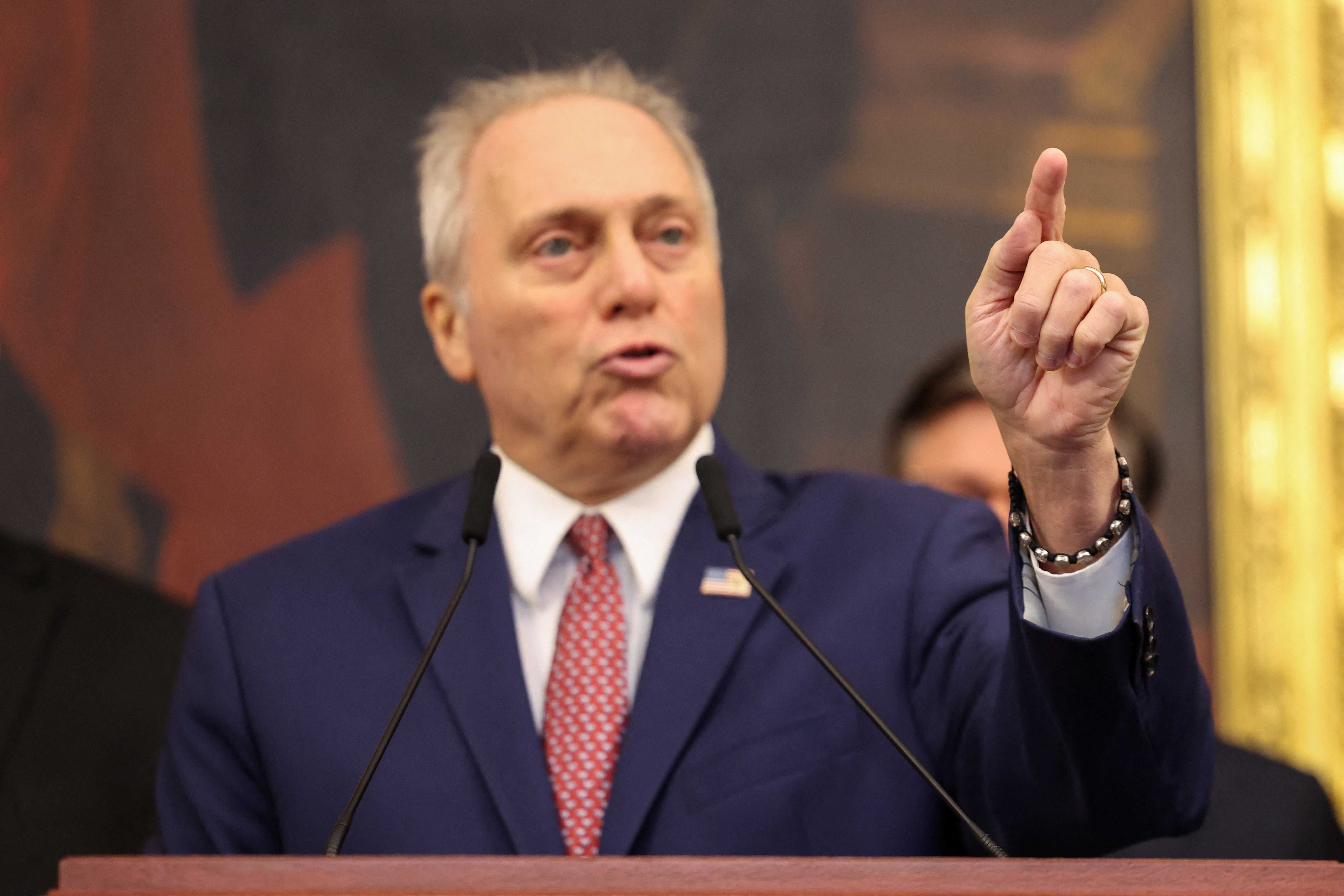 U.S. House Majority Leader Steve Scalise (R-LA) speaks next during a press conference to discuss the ongoing government shutdown, on Capitol Hill in Washington, D.C., U.S., October 27, 2025. REUTERS/Kylie Cooper