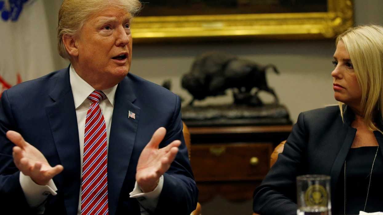 U.S. President Donald Trump with Pam Bondi in the White House in Washington, U.S., February 22, 2018. REUTERS/Leah Millis/File Photo