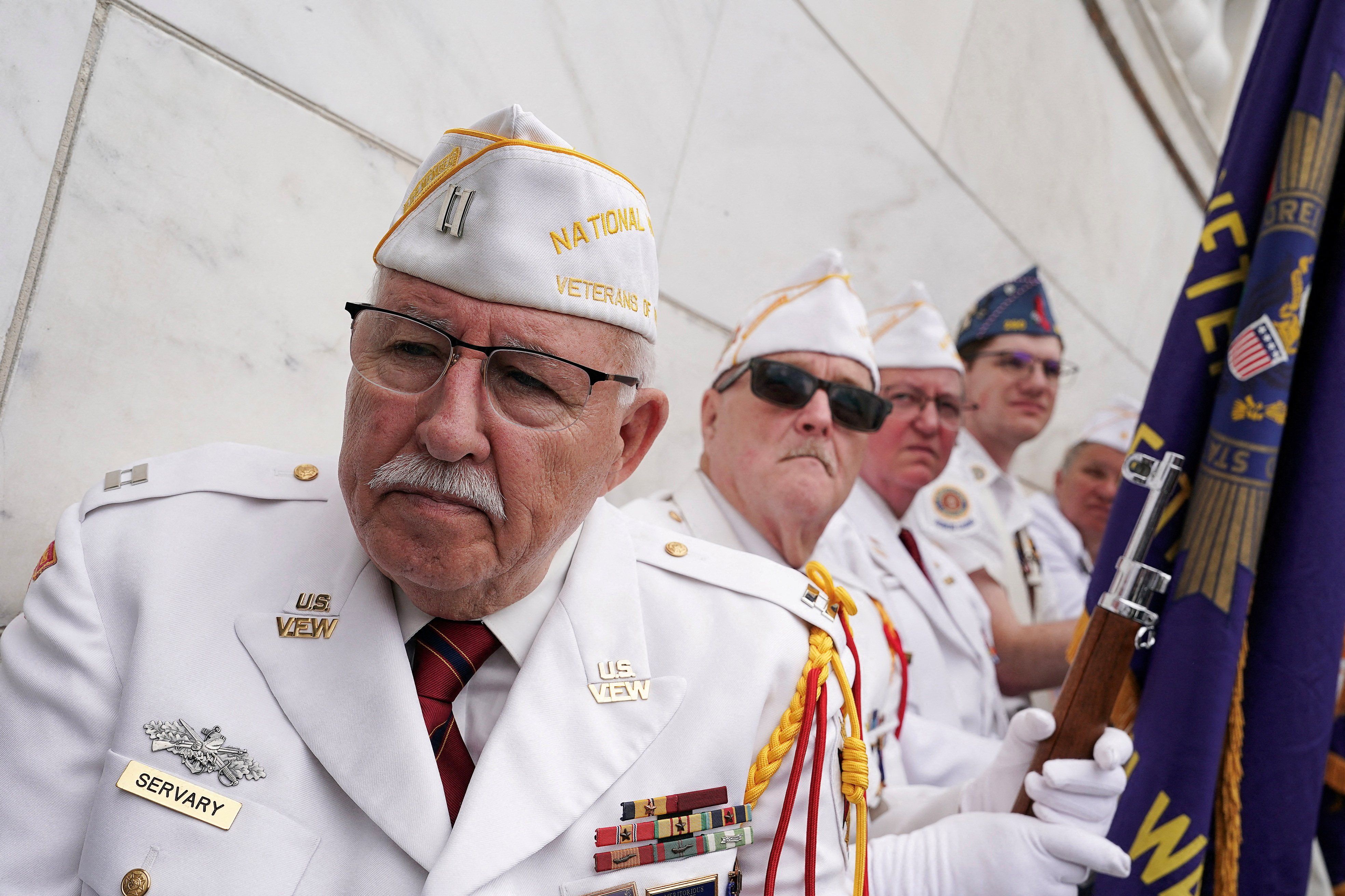 Veterans attend the annual National Memorial Day Observance in the Memorial Amphitheater at Arlington National Cemetery in Arlington, Virginia, U.S., May 26, 2025. REUTERS/Ken Cedeno