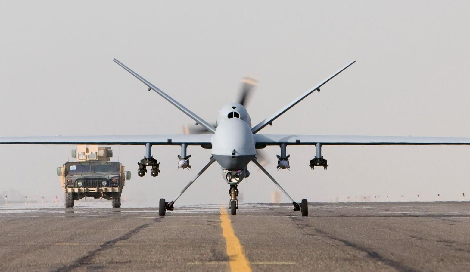 An MQ-9 Reaper taxis after a mission in Afghanistan.