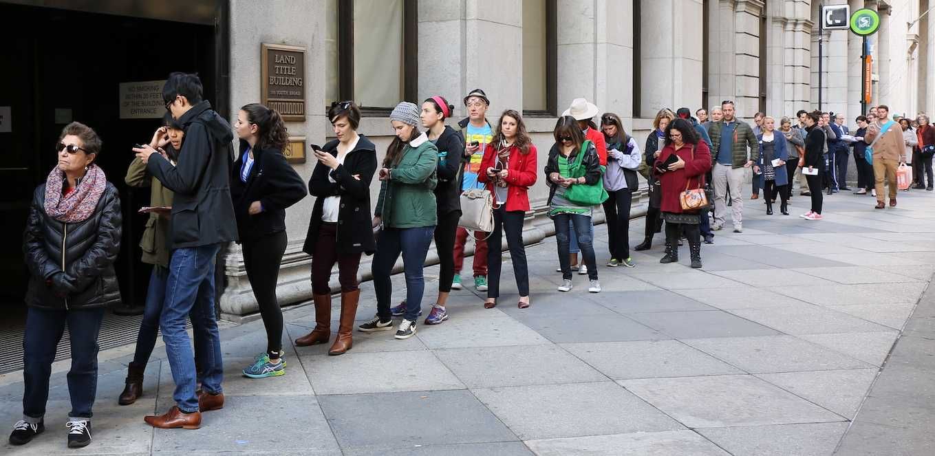 Voters line up.