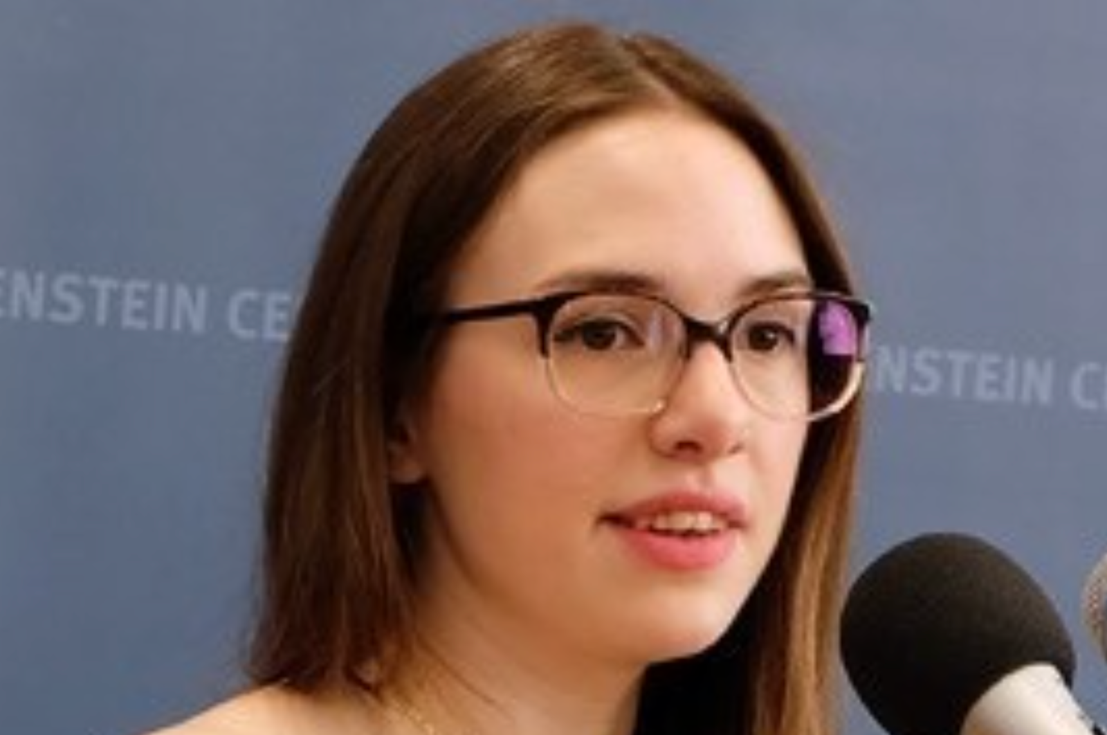 Elizabeth Bruening speaking at the Shorenstein Center in February 2018.