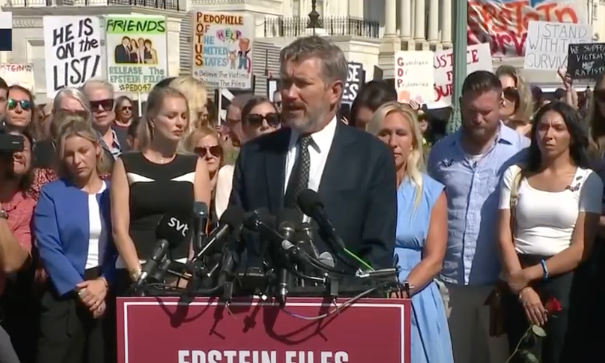 "The shame does not fall on these brave women," Rep. Marjorie Taylor Greene (R-Ga.) said. "The shame falls on every single person that enabled it. The shame falls on every single person that took money to continue it. And the shame falls on the people in power over several decades who protected the monster, Jeffrey Epstein, and his cabal, who continued the nightmare."