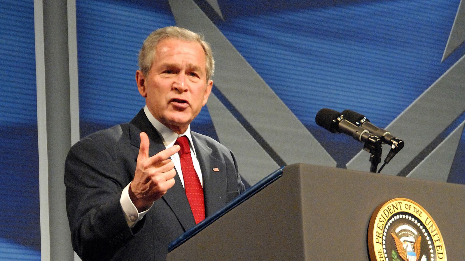 President George W. Bush discusses the war on terrorism with about 1,100 attendees at the National Museum of the U.S. Air Force March 27. The president landed at nearby Wright-Patterson Air Force Base, Ohio, and traveled to the museum, where he spoke for about 40 minutes. President Bush thanked Airmen for their role in the fight against terrorism and outlined the need for continued support to Iraq.