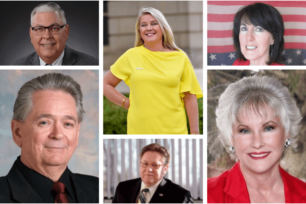 Six of the 15 GOP electors whose charges were later dropped and have received a pardon from President Trump: (clockwise) Kent Vanderwood, Meshawn Maddock, Marian Sheridan, Kathy Berden, Stanley Grot and Clifford Frost