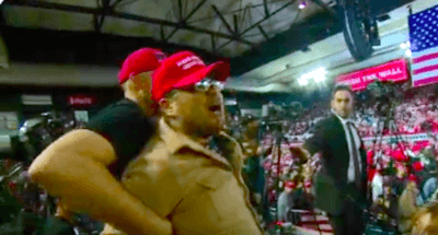 A Trump campaign official later suggested the assailant was drunk, and Trump reportedly gave Skeans a thumbs-up signal, and then continued his speech after the cameraman returned the gesture.