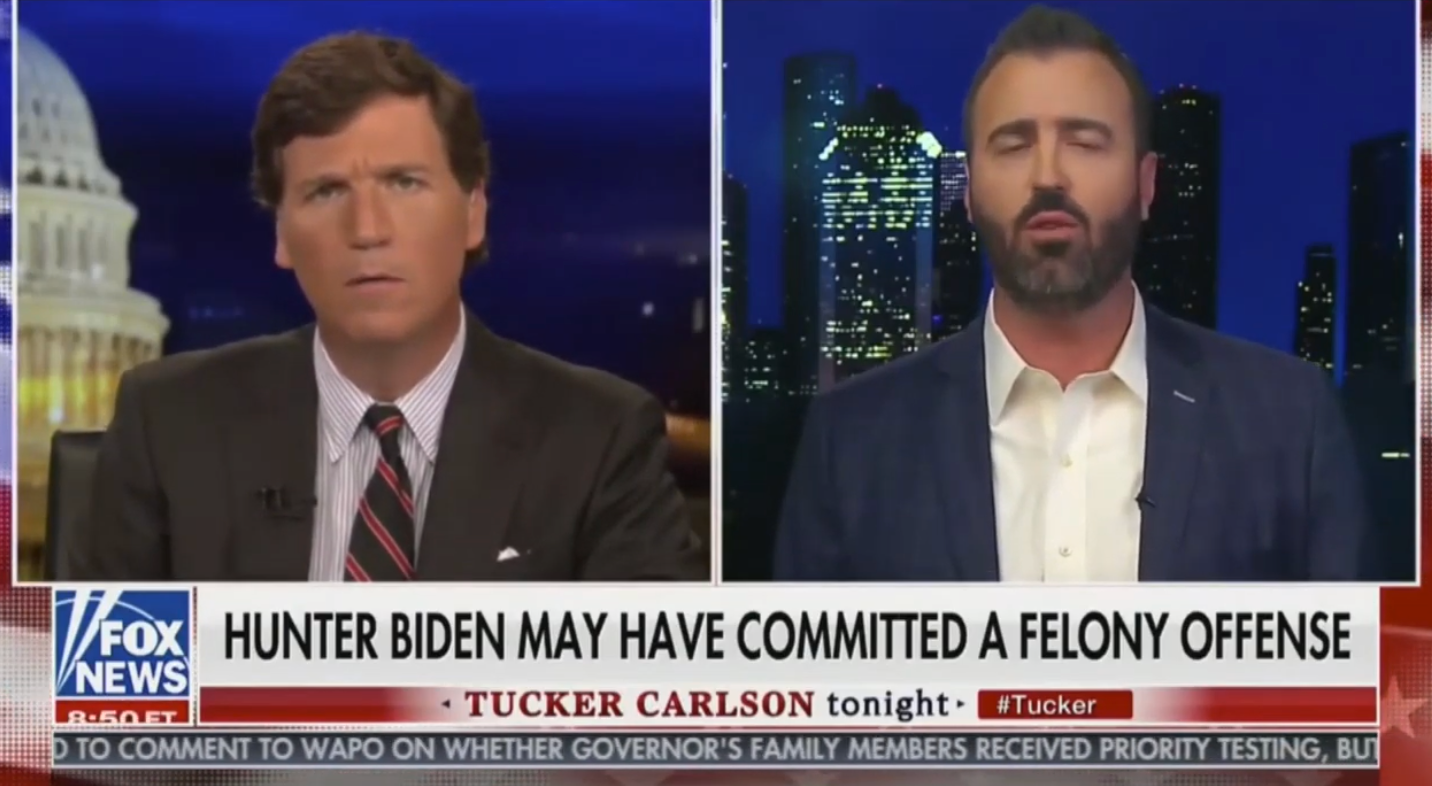 And it's not about Hunter Biden and his drug use. Nobody cares that he was bumpin' Booger Sugar and European hookers on the weekend, it's about justice, that he's never held accountable for it and none of the Bidens are, but you would be, Tucker, and so would I.