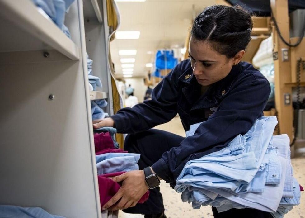 Chief Hospital Corpsman Dom Navarro, from Orange County, Calif., counts patient gowns in the medical ward aboard Military Sealift Command hospital ship USNS Mercy (T-AH-19) March 26. Mercy deployed in support of the nation's COVID-19 response efforts and will serve as a referral hospital for non-COVID-19 patients who are admitted to shore-based hospitals. This allows shore-based hospitals to focus their efforts on COVID-19 cases. One of the Department of Defense's missions is defense support of civil authorities. DoD is supporting FEMA, the lead federal agency, as well as state, local and public health authorities in helping protect the health and safety of the American people. (U.S. Navy photo by Mass Communication Specialist 2nd Class Ryan M. Breeden)