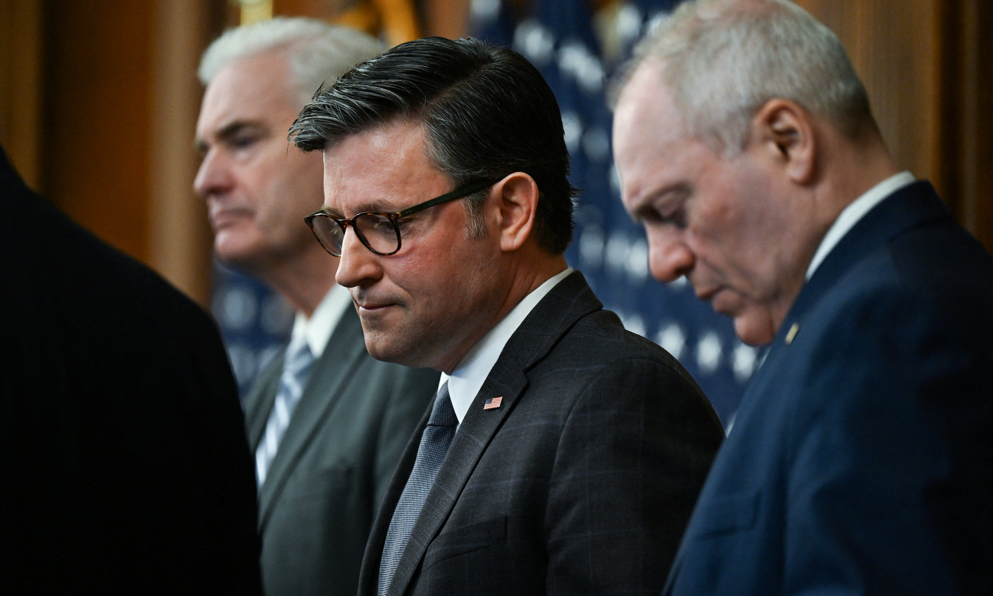 U.S. Speaker of the House Mike Johnson (R-LA) attends a press conference with other House Republicans, more than a month into the ongoing U.S. government shutdown on Capitol Hill in Washington, D.C., U.S., November 4, 2025. REUTERS/Annabelle Gordon