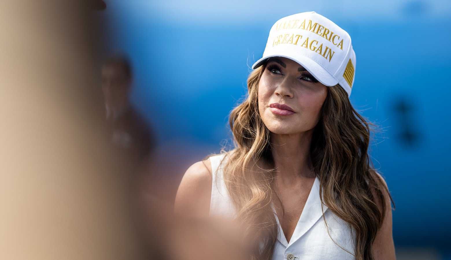 Secretary of Homeland Security Kristi Noem looks on as President Donald Trump greets Florida Governor Ron DeSantis (R) at Dade-Collier Training and Transition Airport in Ochopee, Florida, Tuesday, July 1, 2025. (Official White House Photo by Daniel Torok)