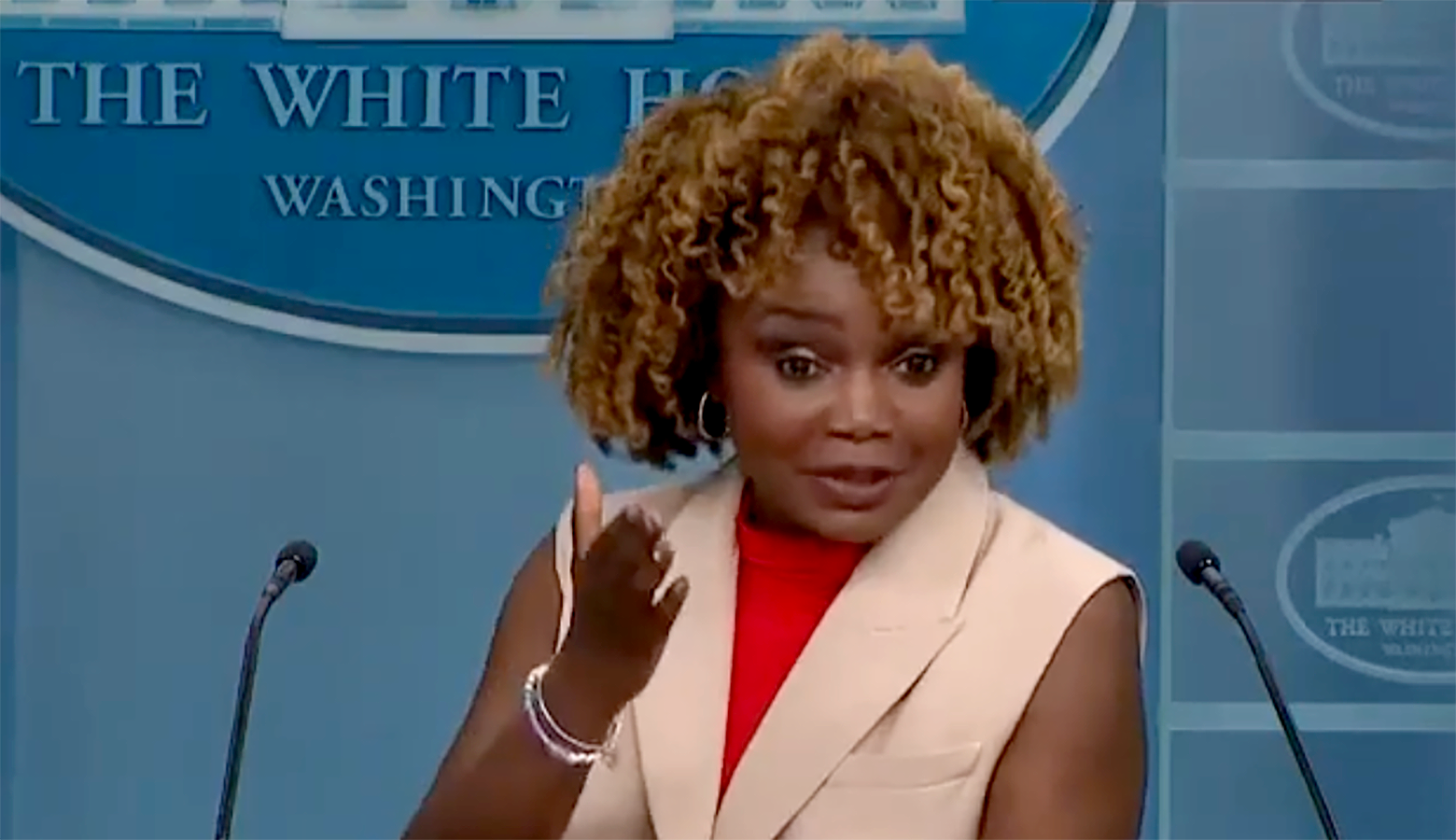 "As you heard from your colleague, the president of the WHCA, that's inappropriate," Jean-Pierre said. "Thank you, Kelly."