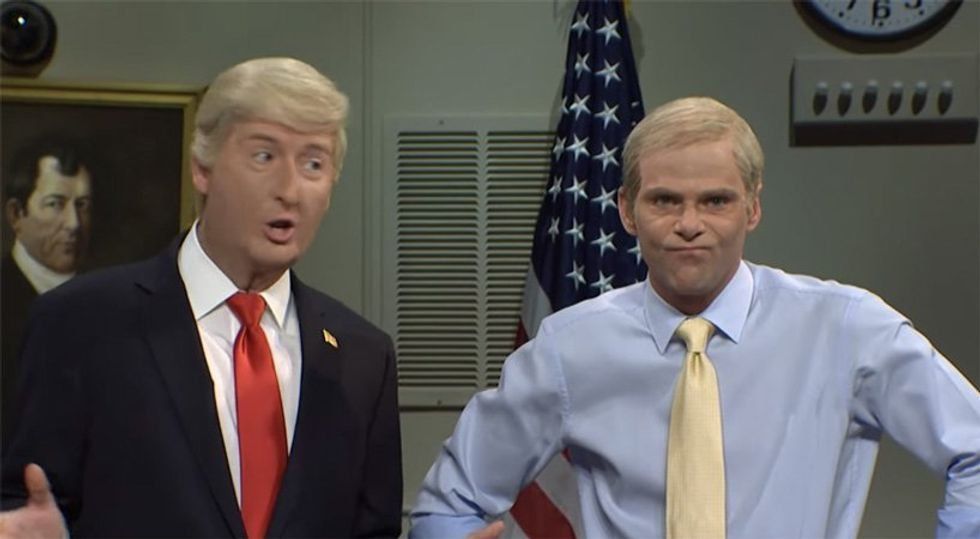 Saturday Night Live jumped back into politics this week, landing with both feet on Rep. Jim Jordan (R-OH) -- played by Mikey Day -- with Donald Trump ridiculing him over his failed bid to become House Speaker.