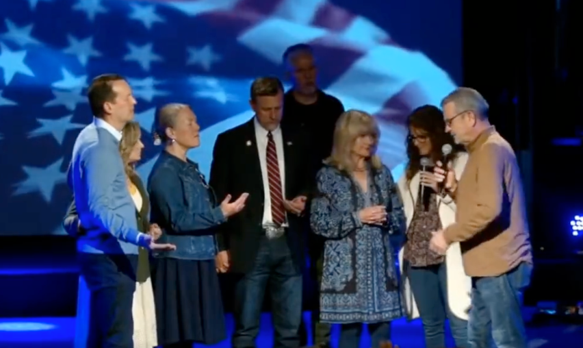The bizarre ritual led by Enlow – a conspiracy theorist who has glued himself to and made innumerable false predictions about former President Donald Trump's 2020 election lies – even pantomimed sprinkling holy water on the GOP hopefuls: "Marc Thielman, who is running for governor, Darin Harbick, who is running for the U.S. Senate, and Patti Adair, who is seeking reelection as a county commissioner," according to Right Wing Watch.