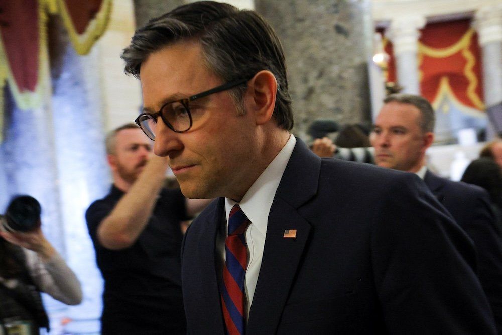 U.S. House Speaker Mike Johnson (R-LA) walks through Statuary Hall prior to U.S. President Donald Trump's speech to a joint session of Congress at the U.S. Capitol in Washington, D.C., U.S., March 4, 2025. REUTERS/Brian Snyder