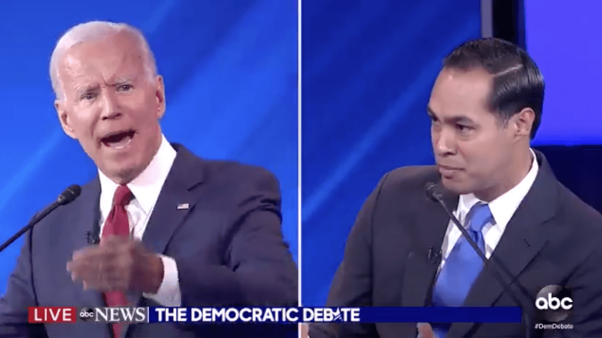 The moment came while Castro was criticizing Biden's health care plan, saying it would leave vulnerable people like his grandmother to pay for insurance they couldn't afford. But Biden objected, saying his plan would be free for people who couldn't afford it and would only be a buy-in for people who could pay.