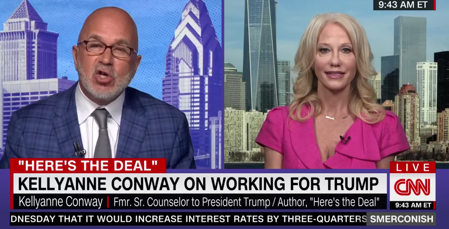 When Kellyanne Conway appeared on CNN with host Michael Smerconish, things quickly went awry when he asked her about the chapter in her book that speaks of her husband, George Conway. Instead of focusing on the question, Conway spiraled off into a rant about her husband's stance on former President Donald Trump.