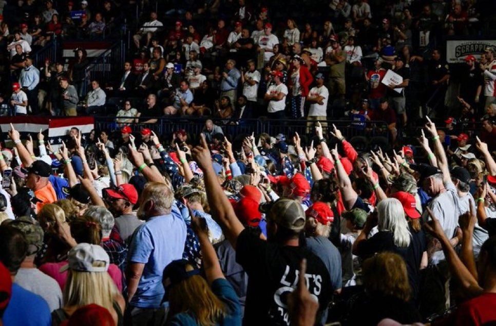 "It was humiliating," Comstock added. "It was a QAnon fest, it was playing this strange QAnon music, they were all sort of, you know, bowing - I think Marjorie Greene was there talking about the one true leader." The event featured a number of bizarre outings, such as one moment when the rally attendees raised their hands to the former president in an apparent show of loyalty.